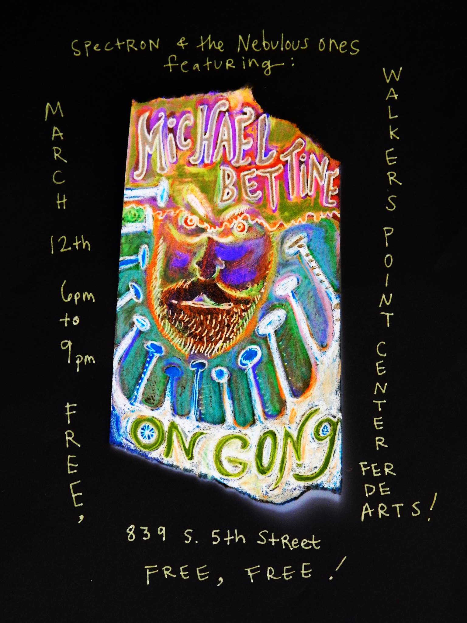 Stand before a duo of writers and receive two typewritten interpretations of your physical presence as well as a musical one by Spectron and his Nebulous Band: Spectron Sieger on bass, Jess Lemont on drums, Michael Bettine on gongs, He Can Jig on pippi, Jade Kastel on accordion, Dennis on saxophone and Casey on guitar! Walk through a comedic literary installation that spreads out from the windows to the hallway to the bathroom. Create your own poem collages out of a pile of pre-typed words on colorful paper! Check out WPCA's current exhibition In//Out.